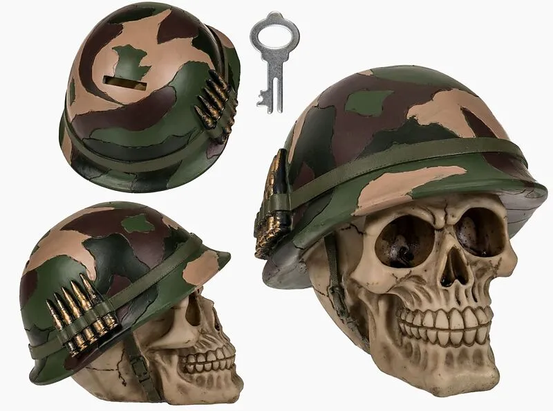 Totenkopf Sparkasse Army aus Polyresin mit Schloss, ca. 15x14 cm