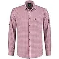 Grösse: M Material: 100% Baumwolle Langarmiges Trachtenhemd in weinrot/weiss kariert. Das Hemd hat eine Brusttasche und einen Stehkragen. Die Knöpfe glänzen in Hirschhorn-Optik und verschiedene Stickerein zieren das Hemd zusätzlich.
