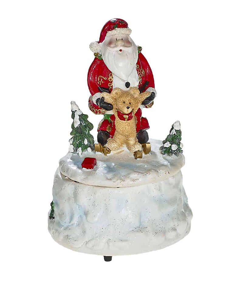17cm Die Landschaft mit dem Weihnachtsmann dreht sich zur Melodie von Jingle Bells. Weihnachtliche Stimmung garantiert!