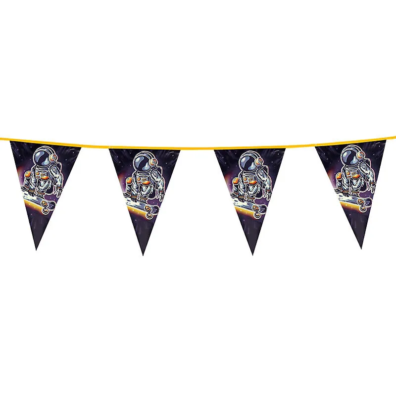 Länge: 6m à 15 Flaggen (30 x 20 cm) Material: 100% Polyethylen Diese Weltraumflaggen sind die ideale Dekoration für coole Kinderpartys, Mottopartys oder jede andere Gelegenheit, bei der Abenteuer und Action im Vordergrund stehen.