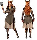 Lieferumfang: 2-lagiges Kleid mit Fell-Überwurf und Taillengürtel, Armstulpen Materialzusammensetzung: Kleid: 85% Polyester; 15% Leinen Armstulpen + Gürtel: 100% Polyester