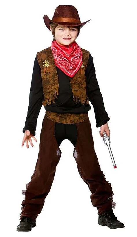Lieferumfang: Weste, Chaps, Tuch und Hut Grösse S = 3 - 4 Jahre Grösse M = 5 - 7 Jahre Grösse L = 8 - 10 Jahre