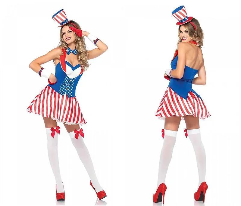Lieferumfang: Kleid, Hut, Armgamaschen, FliegeMaterial: 100%PolyesterSexy Yankee Doodle Kostüm mit süssen Details.
