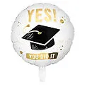 Dieser niedliche weiße Folienballon mit der Aufschrift ""Yes! You did it""-Design ist nicht nur eine tolle Dekoration für eine Abschlussfeier, sondern auch ein schönes Geschenk für den Absolventen. Der Ballon hat einen Umfang von 45 cm und kann mit Helium befü...