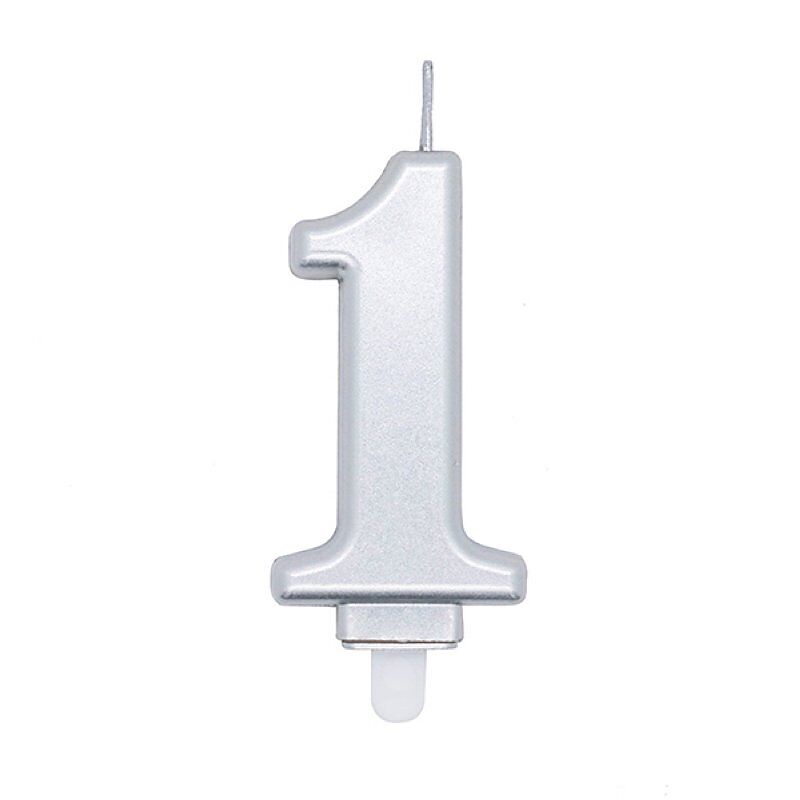 Zahlenkerze 1 silber. Tolle Dekoration für den Geburtstagskuchen.