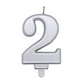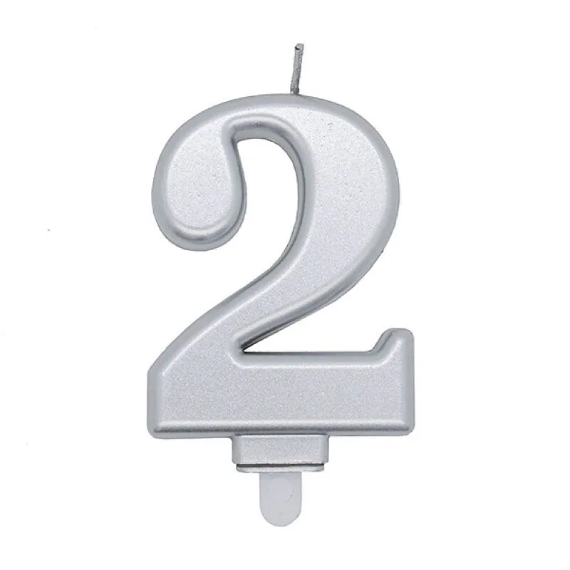 Zahlenkerze 2 silber. Tolle Dekoration für den Geburtstagskuchen.