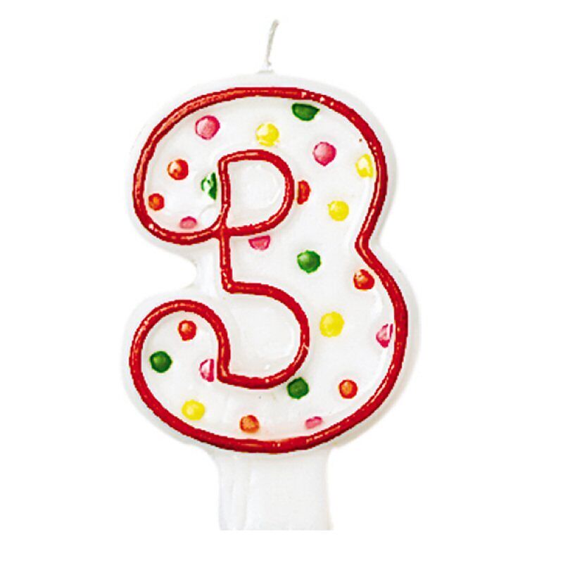 Zahlenkerze 3. Tolle Dekoration für den Geburtstagskuchen.