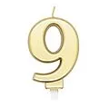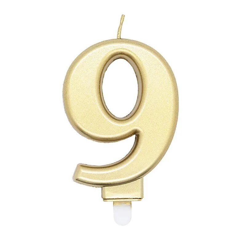 Zahlenkerze 9 gold. Tolle Dekoration für den Geburtstagskuchen.