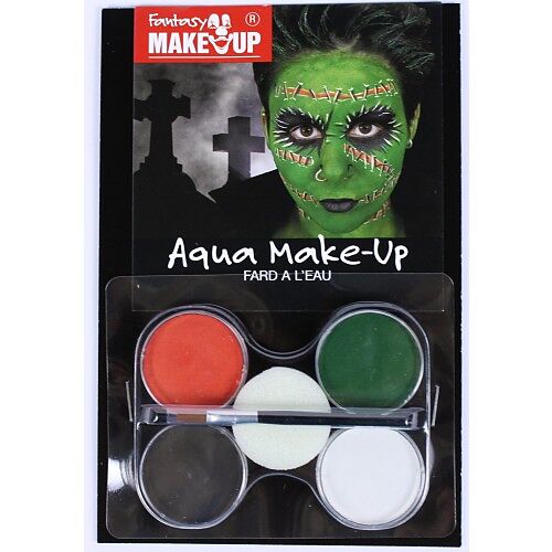Enthält vier Make Up Farben: Grün Rot Schwarz Weiss Inklusive Schminkpinsel Make Up auf wasserbasis