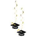 Länge: 85 cm Material: 50% PET, 50% Papier Diese lustigen ,goldenen Hängedekorationswirbel werden im 2er-Set geliefert. Die Swirls/Wirbel sind 85 cm lang und haben am unteren Ende einen Graduation Hat als Dekoration. Ein toller Spass als Dekoration für eine Ab...