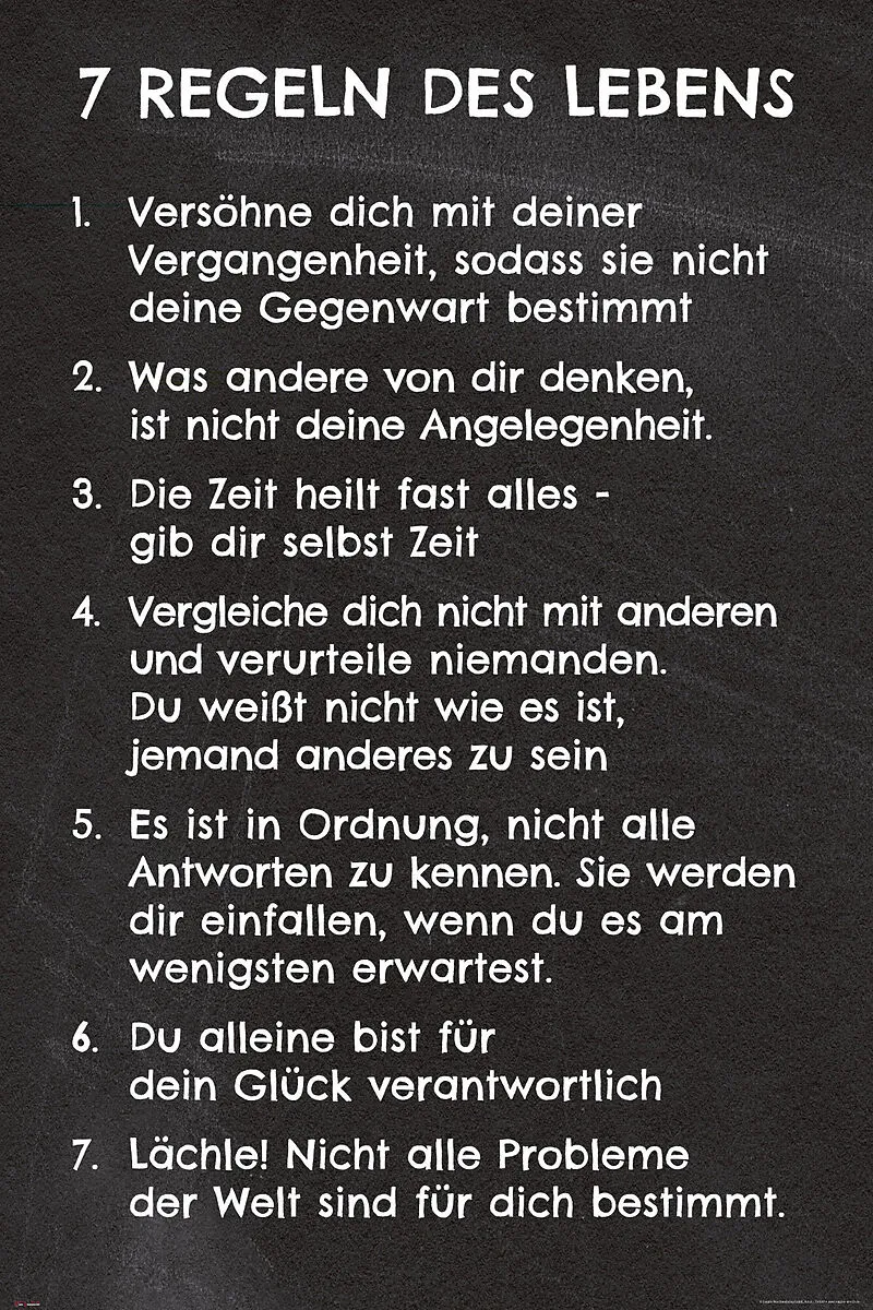 7 Regeln des Lebens schwarz Poster