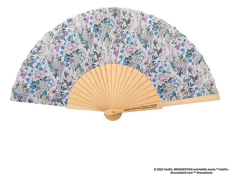 Inspiriert von der eleganten und raffinierten Welt von Bridgerton, bezaubert dieser Fächer mit seinen zarten hellblauen Damastmustern, die an die üppigen Gärten und die zeitlose Romantik der Serie erinnern. Gefertigt aus Holz und leichtem Stoff, ist er faltbar...