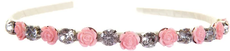 Diamanten und Rosen zieren dieses klassische Stirnband. Jede Rose und jeder Strassstein ist sorgfältig an diesem mit Bändern überzogenen Haarreif befestigt. empfohlenes Alter: ab 3 Jahren