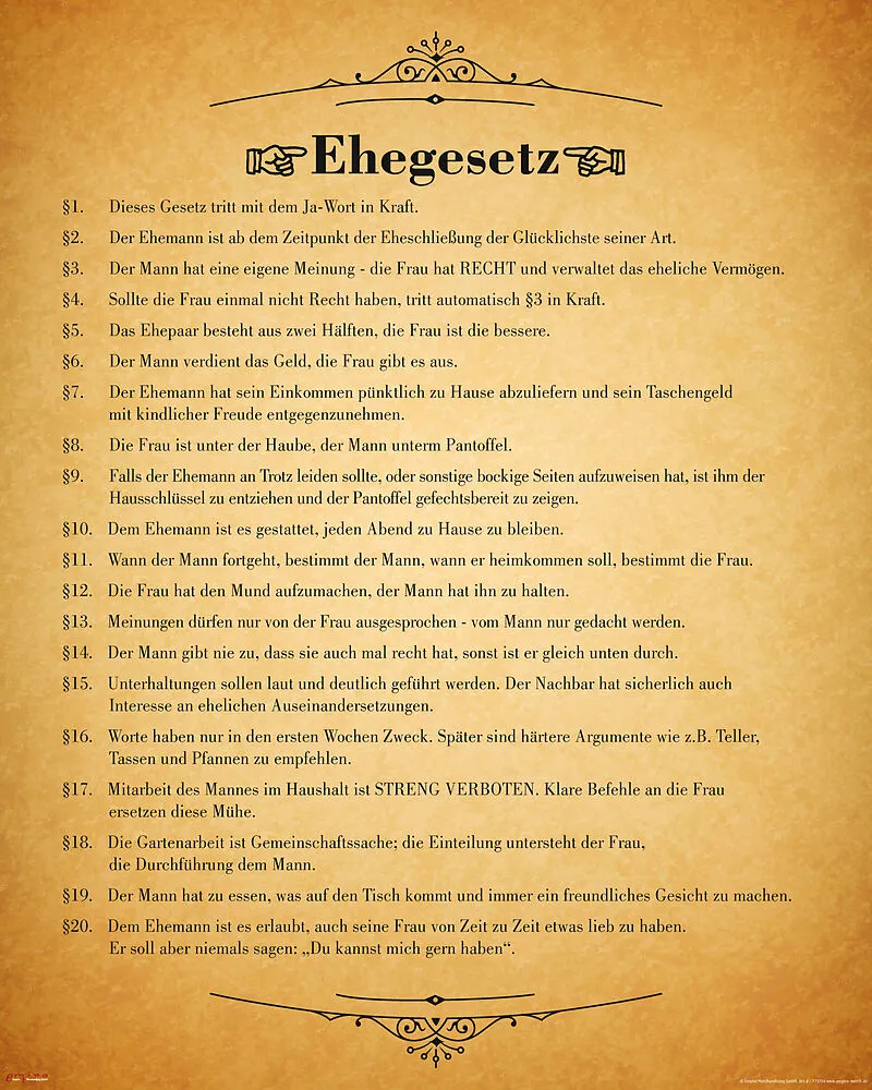 Ehegesetz Urkunde Miniposter
