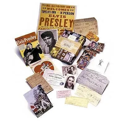 1:1 Reproduktionen von bis anhin nie veröffentlichten Dokumenten aus Elvis' Leben: Schulzeugnis,Scheck von Colonel Parker,gegengezeichnetvon Elvis,s/w-Foto als 14jähriger,Familien- Foto,Weihnachts-Postkarte, Versicherungsausweis, Fanclub- Büchlein,Sammelkarten...