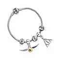 Offizielle Harry-Potter-Charms auf einem versilberten Charm- Armband.Charms, die nach dem offiziellen Styleguide von Warner Bros. hergestellt wurden. Das Armband wird in einer offiziellen Harry- Potter-Box mit dem Warner Bros.-Logo auf der Rückseite geliefert