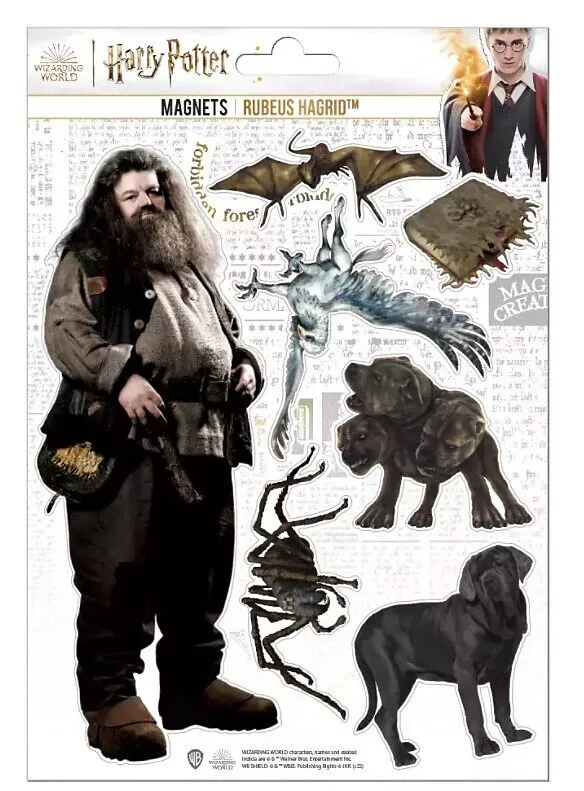 Bogen mit 7 Schaummagneten: Rubeus Hagrid, Hund, Aragog Spinne, Fluffy, Buck, Monster-Buch und Norbert.15 x 21 cm
