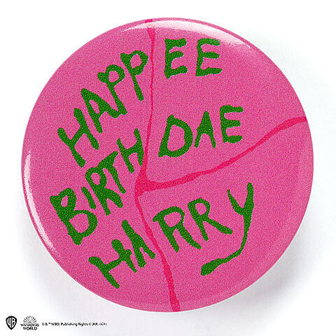 Erleben Sie die Magie von Harry Potter jeden Tag mit unserem "Happee Birthdae Harry"-Button-Abzeichen. Dieses Abzeichen ist eine charmante Hommage an den kultigen Geburtstagskuchen, den Hagrid Harry schenkte - ein köstlicher rosa Schokoladenkuchen, der mit dem...