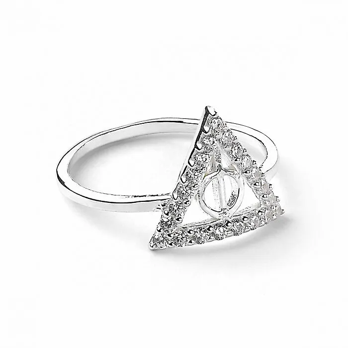 Grösse: S Dieser Ring ist aus Sterlingsilber mit Kristallelementen. Ideales Geschenk für einen Harry Potter Fan. Die Heiligtümer des Todes symbolisieren die drei mächtigsten magischen Gegenstände! Kompatibel mit anderen Harry Potter Charms, Armbändern und Hals...