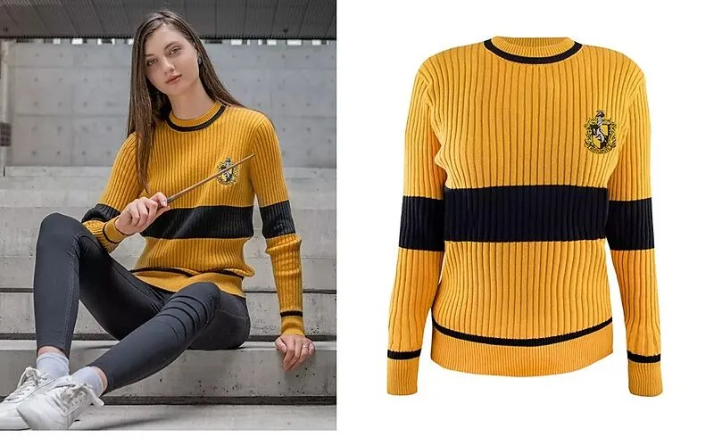 Pullover, der von Quidditchspielern des Hufflepuff House getragen wird. Pullover, der sowohl für Cosplay als auch für den Alltag getragen werden kann. Material: 55 % Baumwolle, 45 % Polyester Grösse M