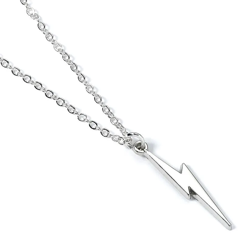 ffizieller Harry Potter Lightning Bolt Charm an einer versilberten Halskette. Die berüchtigte Form von Harrys Narbe, die ihn auf seiner Reise endlos beunruhigte, bis er schließlich Lord Voldemort besiegte. Der Charm ist ca. 15 mm hoch und die Halskette ist ein...