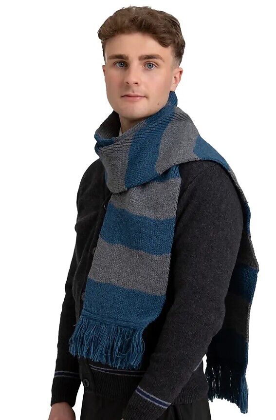 Kaufen Sie Ihr eigenes Stück "Harry Potter"-Film-Erinnerungsstücke und holen Sie sich die Magie und Zauberei von Hogwarts mit nach Hause mit dem offiziell lizenzierten Warner Bros.-Strickschal mit breiten Ravenclaw-Streifen aus den frühen Filmen. Lochaven fert...