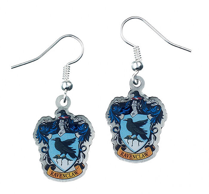 Ravenclaw-Wappen-Anhänger an versilberten Ohrringhaken Diese Charm-Ohrringe wurden nach dem offiziellen Warner Bros Style Guide entworfen. Jeder Anhänger ist ca. 20 mm gross. Zeige allen, dass du im Hause Ravenclaw zuhause bist. Schaue dir auch die anderen pas...