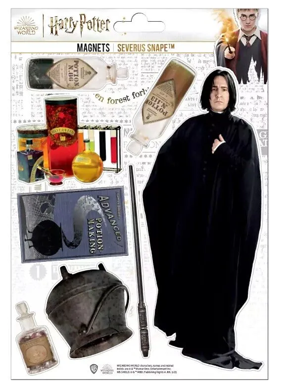 Bogen mit 8 Schaummagneten: Severus Snape, Flasche No 86, Flasche No 113, Buch, Flasche, Kessel, Zauberstab und Kurs-Gegenstände15 x 21 cm