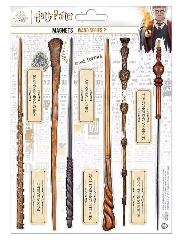 Bogen mit 12 Schaummagneten: Zauberstab & Namensschild Hermine Zauberstab & Namensschild Ron Zauberstab & Namensschild Ginny Zauberstab & Namensschild Neville Zauberstab & Namensschild Dumbledore Zauberstab & Namensschild McGonagall 15 x 21 cm...