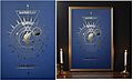 ohne Rahmen Orientierung: Hochformat Grösse: 21 x 30 cm Markierung: Heißprägung durch Druck Farbe: gold Paper: Colorplan Sapphir (Dark blue) 350Gr/m2
