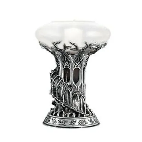 Dieser Kerzenhalter ist die offizielle Nachbildung von Caras Galadhon, der befestigten Hauptstadt der Galadhrim, im Herzen von Lórien (Lothlórien), den Ländern Galadriel und Celeborn. Die Wendeltreppe, die sich um den Baum windet, und die Bögen des Lórien-Pala...