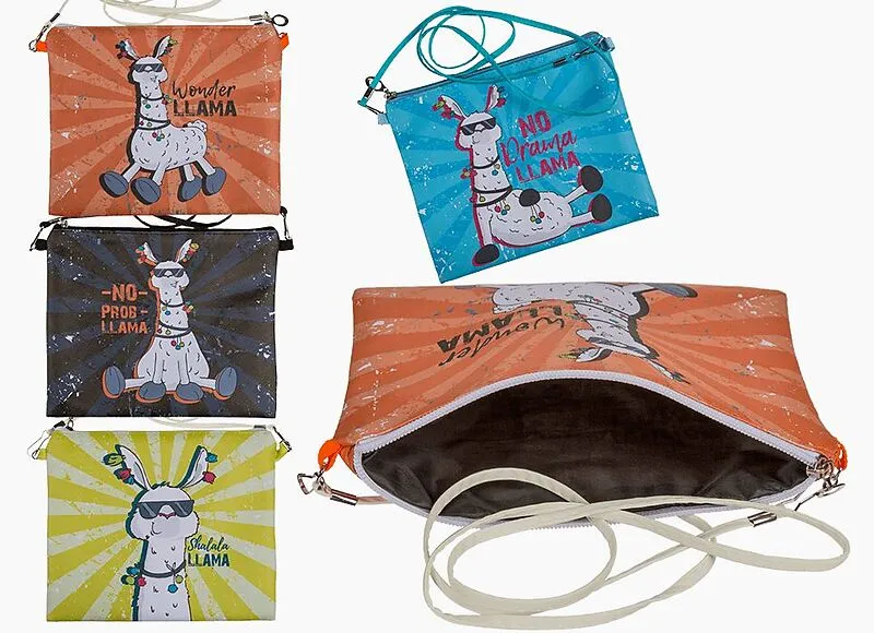 Llama Umhängetasche mit schwarzem Innenfutter & Reissverschluss