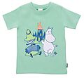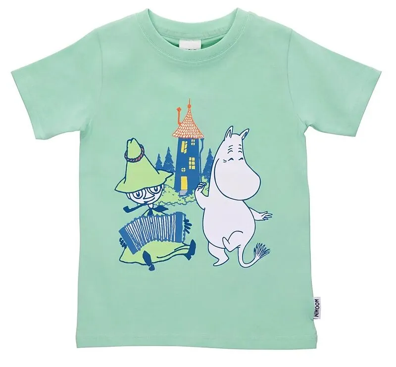 Das kurzärmelige Kinder-T-Shirt in Mintgrün hat einen geraden Schnitt. Auf der Brust ist Mumin zu Schnupferichs Musik tanzend aufgedruckt. Aus bequemer und umweltfreundlicher Single-Jersey-Baumwolle Hergestellt nach Öko-Tex-Standards offiziell lizenziert. Grös...