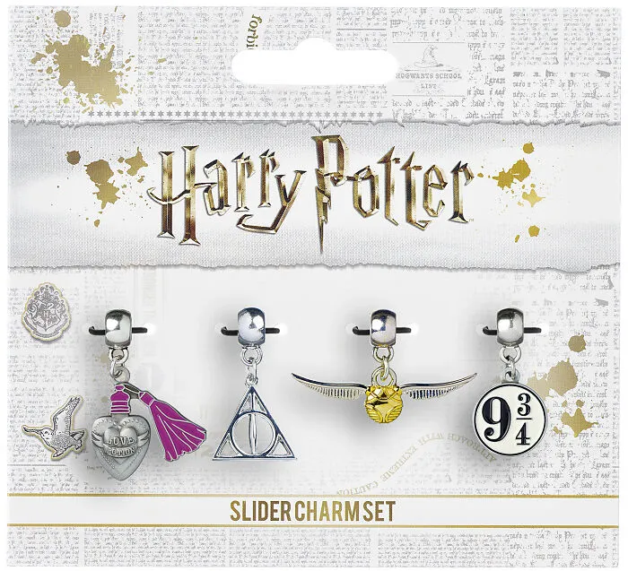 Potion/Platform 9 3/4 Slider Charm Set. 4 Charms an einer versilberten Charm-Bügel Enthält 4 unserer beliebtesten Charms. Diese Charms wurden mit einem Druck aus dem offiziellen Styleguide von Warner erstellt Bros. Sie sind alle ca. 15 x 20 mm groß. Dieses Cha...