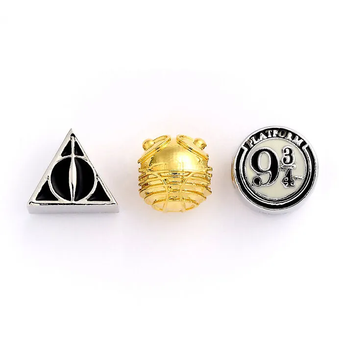 Goldener Schnatz und Plattform 9 3/4.Drei der bekanntesten Ikonen aus den Harry-Potter-Geschichten sind in diesem Charm-Perlenset enthalten. Diese Perlen eignen sich hervorragend, um Charms an Ihrem Armband zu verteilen und eine zusätzliche Dimension hinzuzufü...