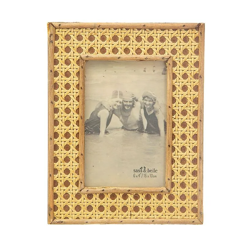 zum aufstellen - ein zeitloser Blickfang Grösse: 17, x 1,5 x 22 cm passend für 15 x 10 cm Fotos Material: MDF, Plastik und Rattan (ein Produkt von sass & belle)