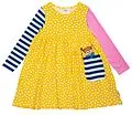 Das gelbe Langarmkleid für Kinder hat einen schönen Schnitt, einen voluminösen Saum und eine große Tasche, aus der eine fröhliche Pippi hervorschaut. Lange Ärmel Schmeichelnder Schnitt oberhalb der Brust Voluminöser, gerüschter Saum Große aufgesetzte Tasche an...