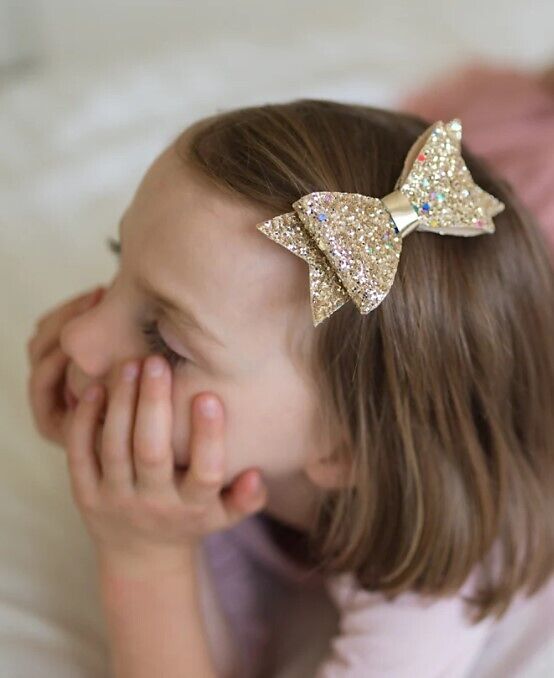 Mit einer Schleife (oder zwei) ist alles besser! Verleihen Sie Ihrem Haar mit dieser goldenen Schleife etwas Glanz. empfohlenes Alter: ab 3 Jahren