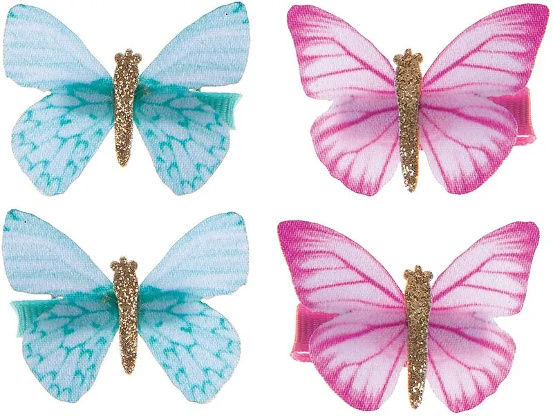 Mit diesen Schmetterlings-Haarspangen werden Wünsche wahr. Holen Sie sich sowohl blaue als auch rosafarbene Sets mit 2 weichen Schmetterlingsklammern, die für mehr Komfort mit einem mit Ripsband überzogenen Clip ausgestattet sind. Die Schmetterlinge haben alle...