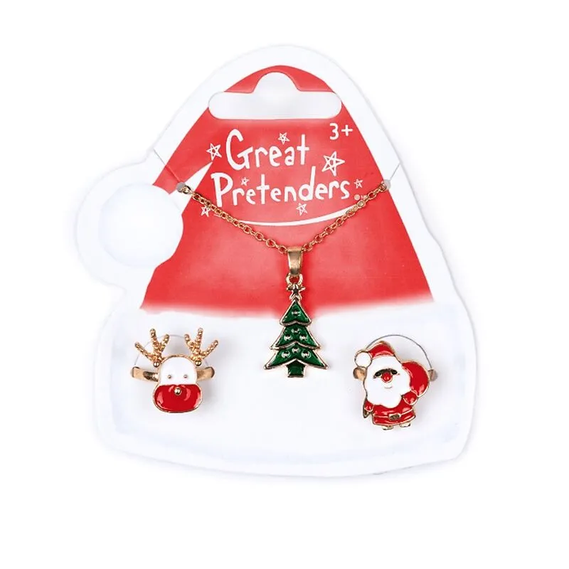 Halskette und zwei Ringe mit Weihnachtsmotiv