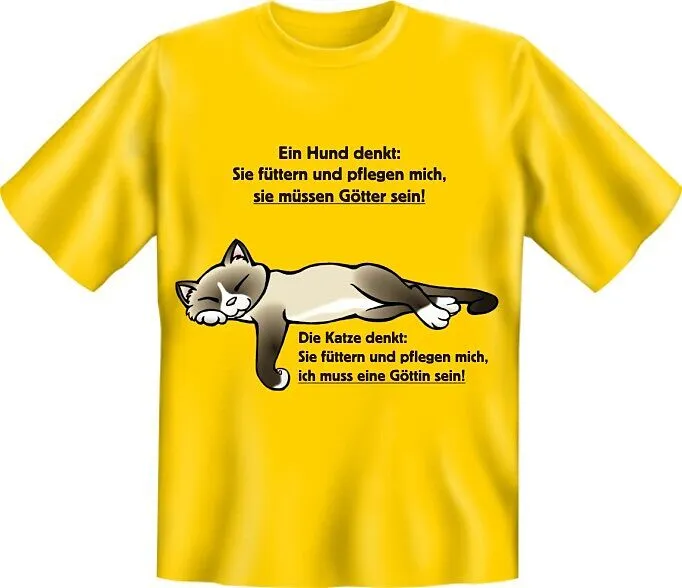 DIE KATZE DENKT: SIE FÜTTERN UND PFLEGEN MICH, ICH MUSS EINE GÖTTIN SEIN!T-Shirt aus 100% Baumwolle, mit hochwertigem Druckmotiv.