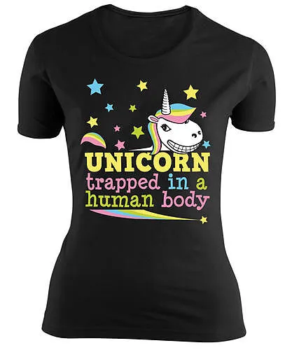 Einhorn Girlie-Shirt Trapped in a human body - M
