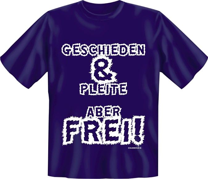 GESCHIEDEN UND PLEITE ABER FREI! T-Shirt aus 100% Baumwolle, mit - S