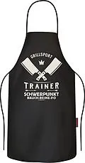 Grillsport Trainer Schwerpunkt Bauch-Beine-Po Schürze aus 100% Baumwolle. Das richtige Outfit für die nächste Grillparty!