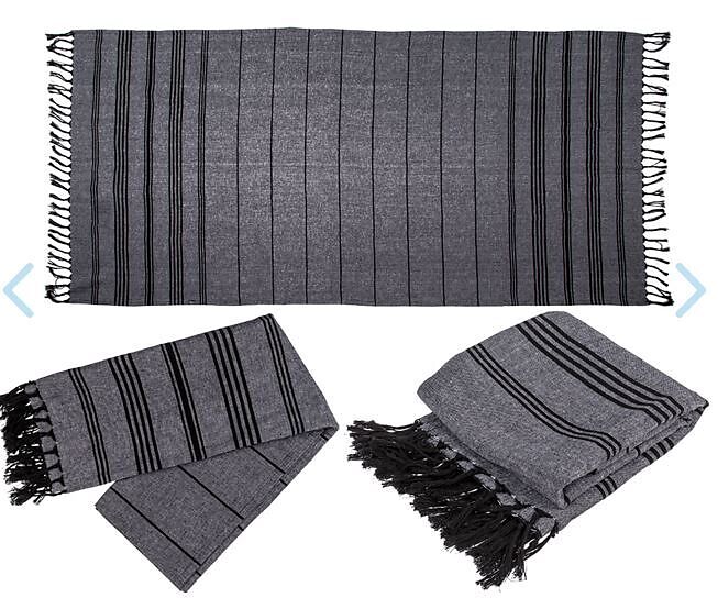 Hamamtuch Fouta-Badetuch für Sauna & Strand, schwarz/weiss