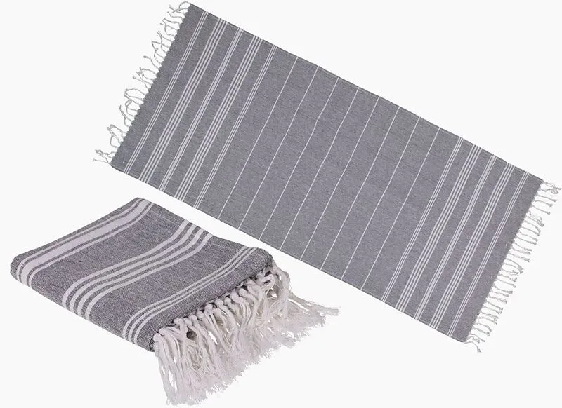 Hamamtuch Fouta für Sauna & Strand, weiss/grau