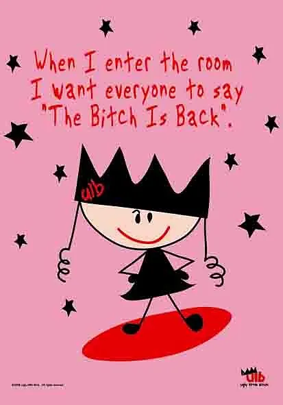 Ugly little Bitch - When i enter the room I want everyone to say "The Bitch is Back",75 x 110 cm. Material: strapazierfähiges,seidiges Acryl, maschinenwaschbar. Vielseitig einsetzbar als Poster,Fahne,Halstuch oder Bandana.