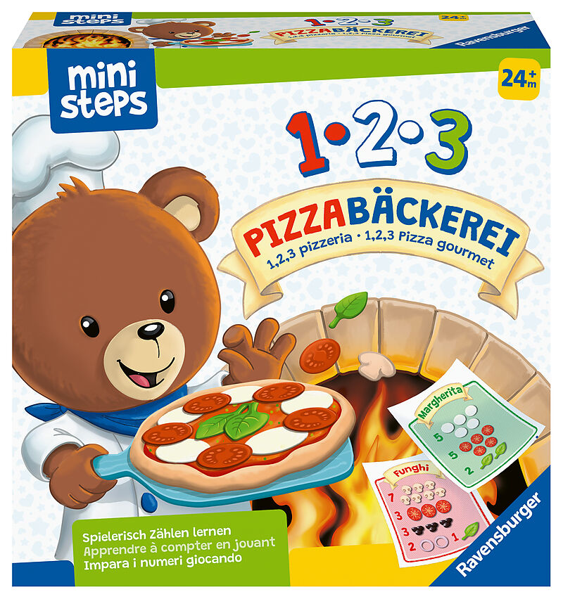 5 Pilze, 3 Scheiben Käse # Wer hilft Bär Butz, die Pizzen für seine Freunde mit den richtigen Zutaten zu belegen Dank diesem ansprechenden, kindgerechten Spielprinzip und dem dreidimensionalen Spielmaterial wird das Zählenlernen zum fantasievollen Spielerlebni...