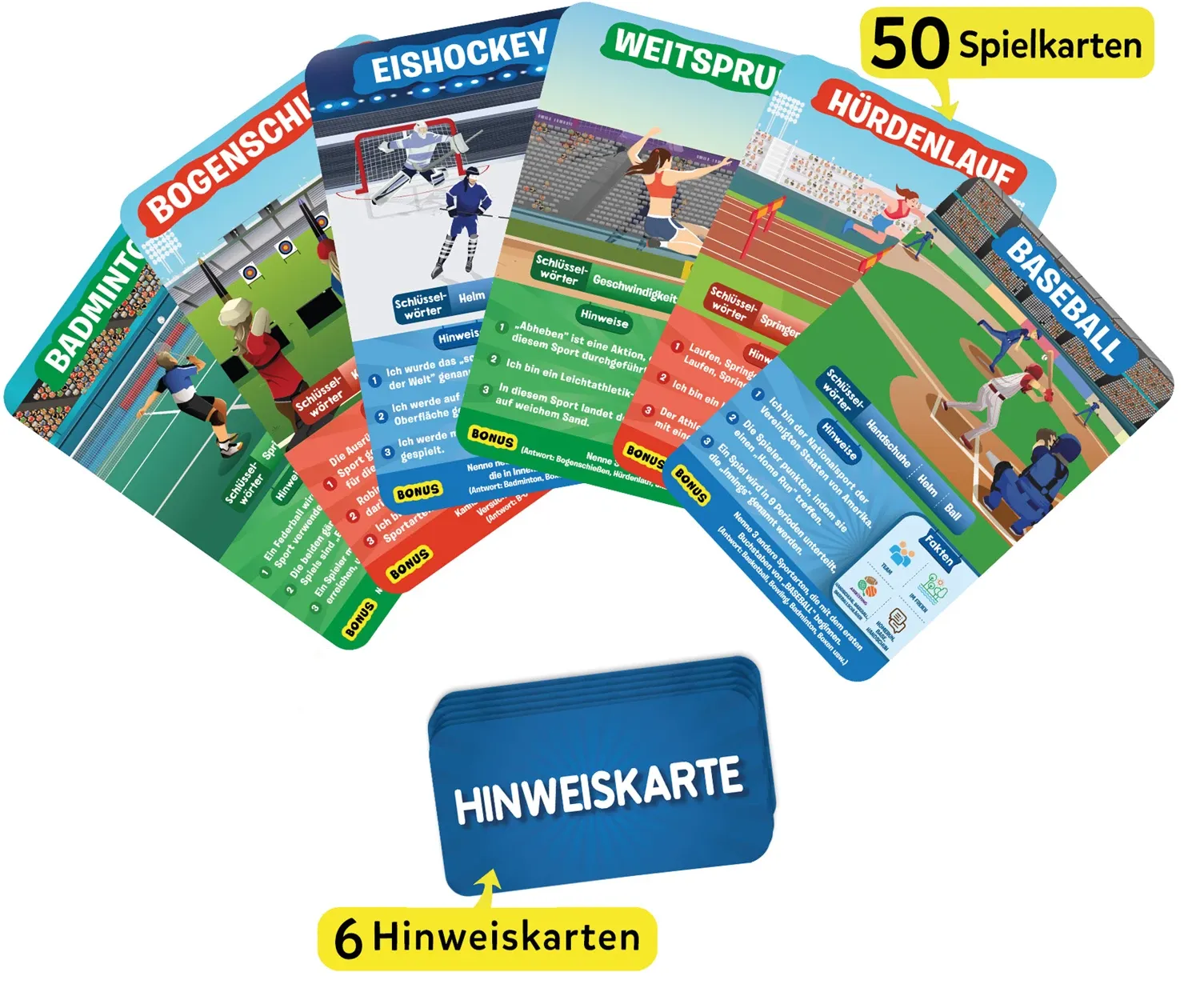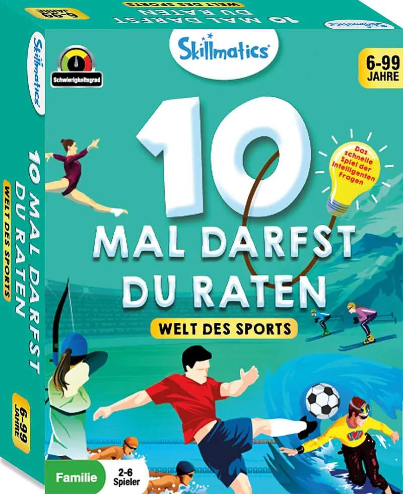 10 Mal darfst du raten Welt des Sports. - Stelle bis zu 10 Fragen, um den Sport auf der Spielkarte zu erraten. Ist es ein olympischer Sport? Wird er in Teams gespielt? Denke nach und stelle kluge Fragen, um 7 Spielkarten zu ergattern! Ein aufregendes Fragespie...