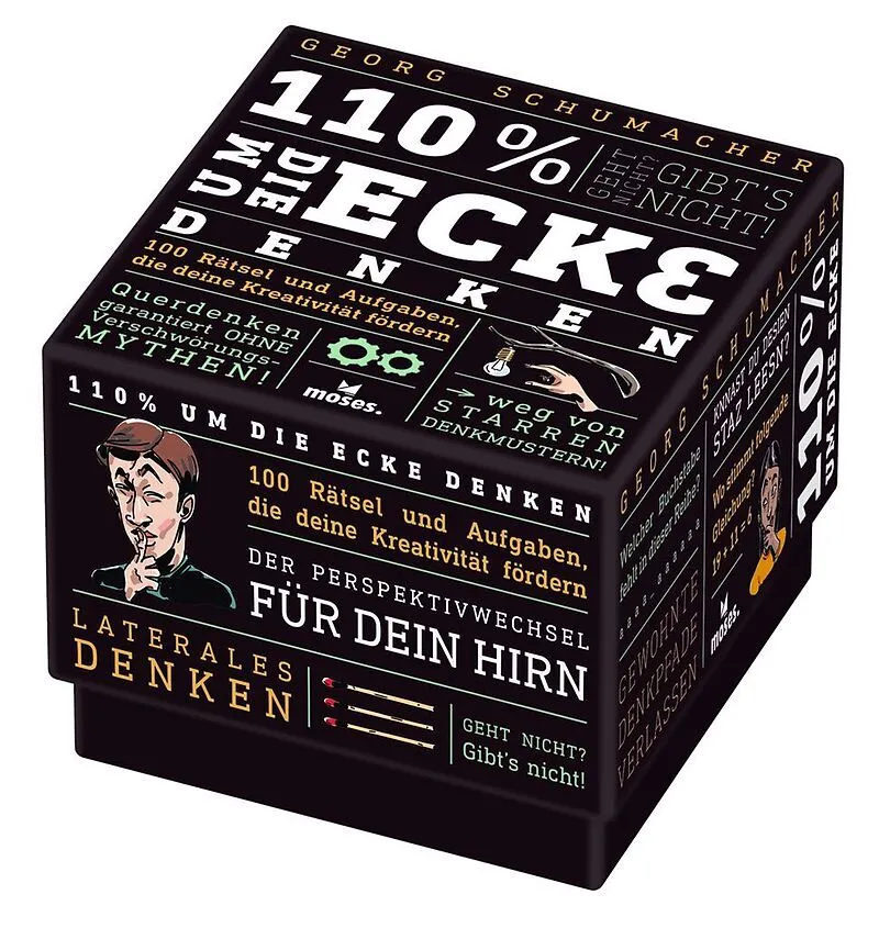 Allzu oft führt lineares Denken in eine Sackgasse. Die 100 Denk-Herausforderungen in dieser Box helfen dabei, durch neue Perspektiven kreative Lösungen zu finden und häufige Denkfehler zu vermeiden.